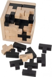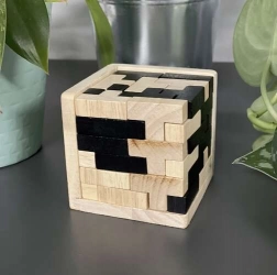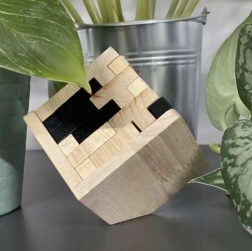 Ez a letisztult, természetes és fekete kivitelű fa fejtörő kiváló az elme tréningjére és design kiegészítőként is az asztalon. A készlet gondosan megmunkált, nem mérgező „T” alakú elemeket tartalmaz, amelyek helyes összerakás után kompakt, színkombinált kockát alkotnak. A precíz kivitelezésnek köszönhetően az összerakás folyamatos, kellemes és addiktív.