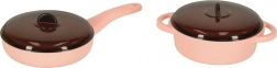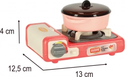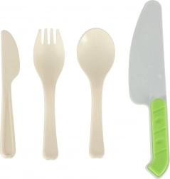 Különféle kiegészítőket tartalmaz, mint például evőeszközök, tányérok, serpenyők és még sok más a kreatív játékhoz.