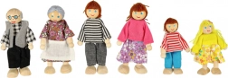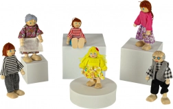 Teljes család 6 db: nagyszülők, szülők és gyerekek. Különböző magasságok (kb. 11,5 cm és 9 cm) segítik a szerepek és családi kapcsolatok megértését.