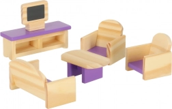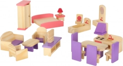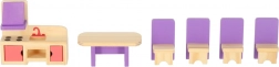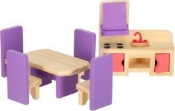 Engedd szabadjára a gyerekek fantáziáját ezzel a komplett, miniatűr fa bútorkészlettel az otthon minden helyiségéhez. A modern lila tónusú bútorok minden babaházban remekül mutatnak, és masszív kivitelüknek köszönhetően bírják a mindennapos játékot.
