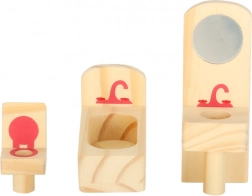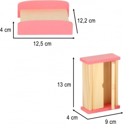 Minden darab minőségi fából készül, simára csiszolt, és tartós, lila és rózsaszín árnyalatú festékkel kezelt a hosszú élettartamért és a biztonságos játékért.