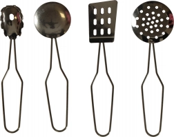 - Gazdag felszereltség: serpenyő, 2 lábas fedővel, szűrő, 4 konyhai eszköz, vágódeszka, 2 tányér, műanyag kés és sokféle élelmiszer (pl. pizza, brokkoli, kolbász, csirke, dinnye, répa, banán, citrom, paradicsom, tojás, padlizsán, homár, paprika, hal, hús, szószok, só, olívaolaj).