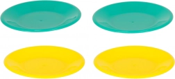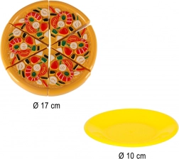 A hat cikkre vágott műanyag pizza megosztásra, tálalásra és közös játékra ösztönöz. Remek alap éttermes vagy családi piknikes szerepjátékhoz.