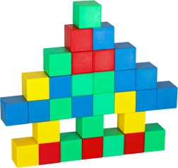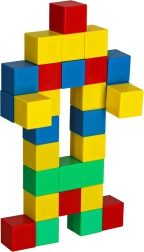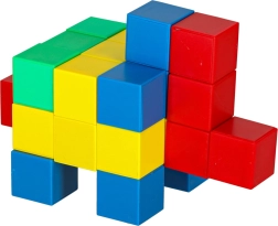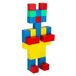 A kockákkal való játék szabad kísérletezést és színes figurák létrehozását teszi lehetővé, ami fejleszti a térbeli képzeletet és a gyerekek kreativitását.