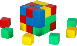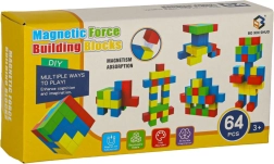 A kockából álló készlet 64 mágneses kockát tartalmaz, amelyeket mágnesek segítségével lehet összekapcsolni, lehetővé téve változatos konstrukciók létrehozását. Minden kocka négyzet alakú, ami lehetőséget ad a gyerekeknek egyszerű és összetettebb építmények szabad létrehozására. A kockák élénk színekben: zöld, sárga, piros és kék jelennek meg, amelyek vonzzák a figyelmet és ösztönzik a színes projektek létrehozását.