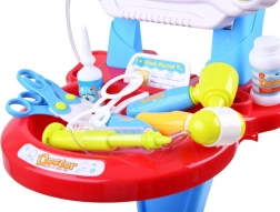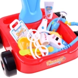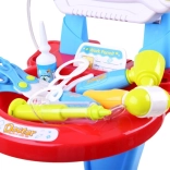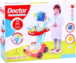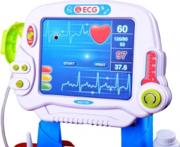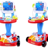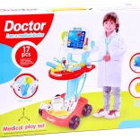 Ez a komplett készlet a kis orvosoknak valósághű elemeket kínál, mint az „EEG/monitor” panel fény- és hangeffektekkel, szívdobogáshangot adó sztetoszkóp, valamint háttérvilágítással rendelkező hőmérő és vérnyomásmérő. A masszív, kerekes kocsinak köszönhetően a felszerelés könnyen mozgatható a szobában.