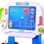 A gyermek monitor megjeleníti az EKG lefutását, és fényekkel, hangokkal kíséri a játékot, ami valósághű vizsgálati élményt ad és fenntartja a gyerekek figyelmét.