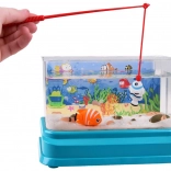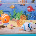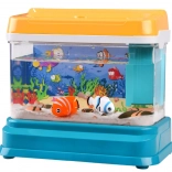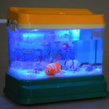 Az akvárium USB-ről működik, a táp csatlakoztatása után az akvárium világítani kezd. A játék tetejéből négy vízsugár tör elő, amelyek fénynyalábokat hoznak létre az akváriumban. A fedélen lévő kapcsoló kellemes dallam lejátszására is képes. A víz mozgása és a lágy fény nagyon kellemes hangulatot teremt. A készlethez tartozó pálcák lehetővé teszik, hogy a gyermek anyával vagy apával együtt játsszon a mozgó halacskákkal. Természetesen az nyer, aki elsőként fogja ki a legtöbb halat! Rengeteg játékötlet születhet ezzel az akváriummal.
