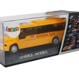 A busz nagy előnye a precíz kivitelezés, amely a legapróbb részletekre is figyelő dizájnban és a gyakori játékot is bíró, erős és tartós anyagban rejlik. Kiegészítő fény- és hanghatások. A busz belsejében zöld LED-ek világítanak, és barátságos zene szól. A jármű teljes egésze sárga, rajta piros Iskolabusz felirattal. Az iskolába vezető út ezzel a busszal kellemes élmény, a szórakozás pedig a kortársaidnak is örömet okoz. További előny a nyitható első és hátsó ajtó, így minden utas felszállhat.