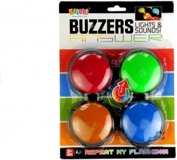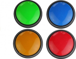 A gombok három különböző hanggal rendelkeznek (a zöld és a piros azonos hangot ad), amelyek a fény megnyomásakor aktiválódnak. Játék közben többek között rendőrszirénára, titkosszolgálati hangra vagy diadalra emlékeztető hangokat hallhat. Biztosak vagyunk benne, hogy a játék elemeiből áradó színek és hangok változatossága mindenkit sokoldalú használatra ösztönöz. Egyetlen korlát a képzelet – a világító csengőgombok használhatók otthoni játékhoz, valamint az iskolában is, ahol jelzőfényként szolgálhatnak minden résztvevő számára. Ez a készlet remek módja lesz gyermeke kézügyességének és reflexeinek fejlesztésére is, mivel használható olyan játékhoz, amelyben meg kell jegyezni a megnyomott színek sorrendjét, majd visszajátszani a szekvenciát.