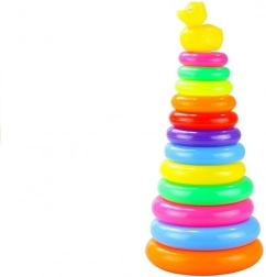 Piramis karikákból egy klasszikus játék, amely most gyönyörű, színes változatban érkezik. Nemcsak a gyermek motoros és mozgáskészségeit fejleszti, hanem a koncentrációt, kézügyességet, valamint lehetőséget nyújt a méretek felismerésére, méret szerinti rendezésre, színárnyalatok alapján, vagy saját szabályok és logika szerint. Ezzel a színes játékkal, amely biztonságos, puha műanyagból készült, gyermeke fürdés közben is szórakozhat. A piramis tetején elhelyezett sárga kacsa még színesebbé teszi a szórakozást. A piramis karikákból évekre szóló befektetés, amely nemcsak a gyermeket segíti a fantázia világának felfedezésében, hanem több szinten is fejleszti őt.