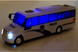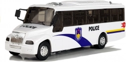 Fedezze fel a szórakozást ezzel a fehér rendőrségi busszal, amely a masszív fém karosszériát részletgazdag kidolgozással és effektekkel ötvözi a még élethűbb játékért. Az átlátszó ablakok, fekete tükrök és ezüst elemek valósághű és strapabíró megjelenést kölcsönöznek a modellnek. A szórakozásról a fények és a motorhangok gondoskodnak, míg a visszahúzós meghajtás elemek nélkül is fürge haladást biztosít.