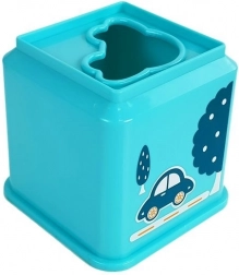 Színes, négyzet alakú pohárkészlet járműmotívumokkal a játékos tanuláshoz. A gyerekek fejleszthetik finommotorikájukat, a kéz–szem koordinációt, a logikus gondolkodást, valamint a színek, formák és számok felismerését. Minden pohárnak van formaválogató nyílása (sorter) a megfelelő jármű párosításához, és lehetővé teszi egy magas piramis építését.