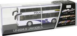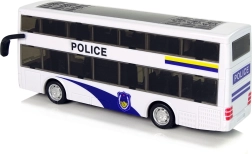 Szerezz örömet a kis akciórajongóknak egy stílusos, kétszintes rendőrségi busszal. A felhúzós pull-back meghajtásnak köszönhetően a busz felhúzás után magától elindul, miközben a fény- és hangeffektek még realisztikusabb légkört teremtenek. A fehér dizájn kék részletekkel, POLICE felirattal és emblémákkal élethűen idézi a szolgálati járműveket.