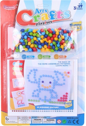 Fejleszd a kreativitásod ezzel a színes mozaikkal, amely 180 műanyag tűt tartalmaz egyedi képek készítéséhez. Ideális a finommotorika és a képzelet javítására.