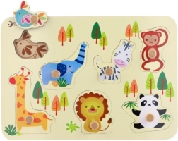 Ez a fa puzzle ideális választás azon gyerekek számára, akik elkezdik felfedezni az állatok világát. A könnyen fogható gomboknak és a szilárd kivitelnek köszönhetően kiváló eszköz a motorikus és megkülönböztető képességek fejlesztéséhez 18 hónapos kortól.