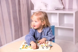 A gyerekek nemcsak az állatok felismerését tanulják, hanem finommotorikus készségeiket is gyakorolják a könnyen fogható gomboknak köszönhetően.