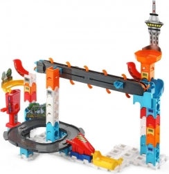 A hosszú lejtők, a spirálok és a hurkok izgalmat és versenyszellemet hoznak. Figyeljétek a versenyző golyókat, és rendezzetek családi bajnokságot.