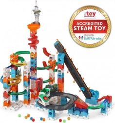 A csomag tartalma: 143 elem, 10 golyó, elektromos kisvonat vagonnal, elektromos lift, színes matricák és részletes, színes cseh nyelvű útmutató. A pálya más készletekkel összekapcsolható, így a móka sosem ér véget.