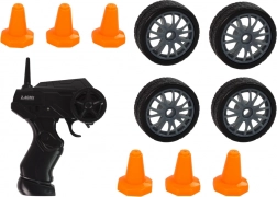 A csomag részei a cserélhető kerekek drifthez és klasszikus vezetéshez, valamint bólyák a saját pályák építéséhez. A szett tartalmaz továbbá 3,7 V-os akkumulátort és USB töltőt, így szinte azonnal indulhatsz a kicsomagolás után.