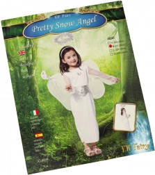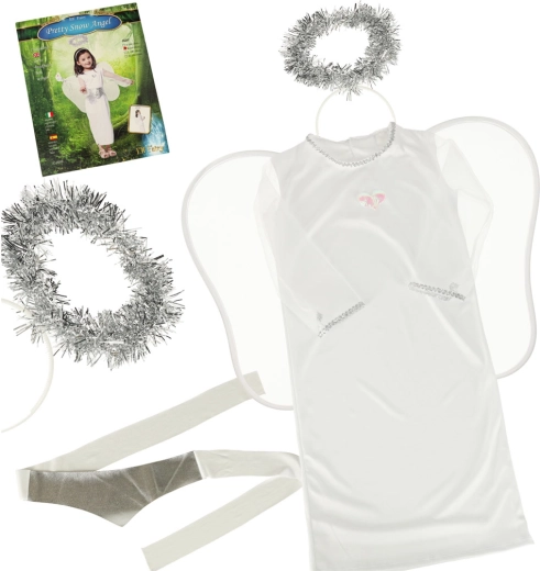 A kosztüm tartalmaz egy fehér szoknyát, övet, glóriás fejpántot és angyalszárnyakat, amelyek teljesen megformálják az angyal megjelenését.