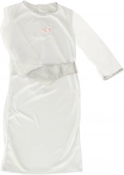 Öltöztesse gyerekét varázslatos angyalka jelmezbe és hagyja, hogy ragyogjon bármely eseményen. Tartalmaz egy hosszú fehér flitteres szoknyát, ezüst övet, glóriás fejpántot és angyali szárnyakat. A jelmez poliészterből készült, ami jó mozgékonyságot biztosít előadások vagy játék közben.