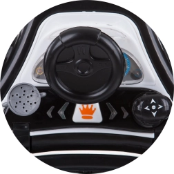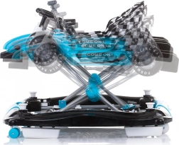 Az ergonomikus ülés 3 magassági pozícióval együtt nő a gyermekkel, az első, 360°-ban forgatható kerekek pedig megkönnyítik a manőverezést. A Forma–1 stílusú, gombokkal, hangokkal és fényekkel ellátott levehető panel fejleszti a látást, hallást és a koordinációt. A járássegítő minőségi, biztonságos műanyagokból készül, könnyen összecsukható és tárolható, és megfelel az EN 1273 szabványnak.