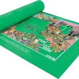 A JUMBO gurítható puzzle szőnyeg ideális segítség minden kirakórajongónak. A zöld filc alátét 150 × 100 cm-es méretben kb. 140 × 95 cm-ig (jellemzően 3 000 darab a legtöbb gyártónál) alkalmas kirakókhoz. Az alátétet az éppen készülő képpel együtt egyszerűen feltekerheti, és gumipántokkal rögzítheti – darabvesztés kockázata nélkül.