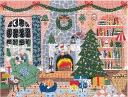 A karácsonyfával, kandallóval és ajándékokkal ábrázolt, nyugodt jelenet beragyogja az otthont és ünnepi hangulatba hozza. A kész kirakó mérete kb. 58,4 × 44,5 cm – kiállításra is ideális.