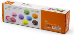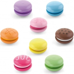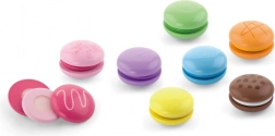 A készlet 8, élethűen kidolgozott macaront tartalmaz lágy pasztellszínekben. Minden macaron két részből áll, amelyeket tépőzár köt össze, így a gyerekek könnyen „kettéválaszthatják” és újra összekapcsolhatják – ez fejleszti a fogást, a kéz–szem koordinációt és a színkombinációk felfedezését.