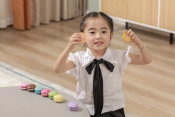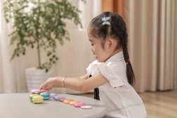 Minden macaron két fele tépőzárral kapcsolódik – a gyerekek szétválaszthatják és újra összeilleszthetik őket új „ízekké”, miközben az ujjaikat és a koordinációt gyakorolják.