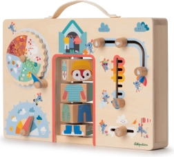 A tábla közepén a bájos Alice róka várja új barátait, hogy segítsenek neki kiválasztani a megfelelő öltözéket bármilyen időben. Alice három fa blokkból áll, amelyeket a gyerekek könnyedén forgathatnak és kombinálhatnak, hogy az aktuális időjárásnak megfelelően felöltöztessék. Kint süt a nap? Alice felveszi a nyári ruháját! Hideg van? A gyerekek kabátot és sapkát adnak rá! Ezekkel az egyszerű és szórakoztató tevékenységekkel a gyerekek észrevétlenül megtanulják az évszakokhoz és az időjárási körülményekhez igazodó öltözködést, ami támogatja önállóságukat és javítja a körülöttük lévő világ megértését.