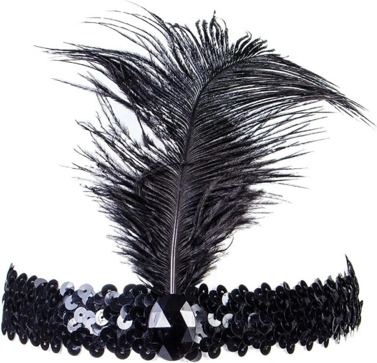 Flitteres fejpánt tollal. Tökéletes dekoráció mindenféle bulira. A kényelmes fejpánt jól alkalmazkodik a fej formájához. A toll puha, tapintása kellemes anyagból készült. A fejpántot gyönyörű, fényes flitterek díszítik. A fejpánt nem hiányozhat egyetlen jelmezes partiról sem.