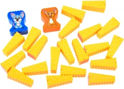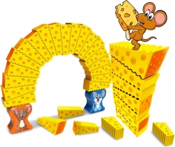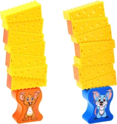 A tornyozós játék a kéz és szem koordinációját magasabb szintre emeli. A sajtkockák és az egér figurák dinamikus kihívást jelentenek.