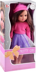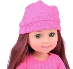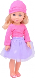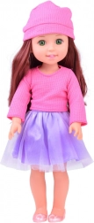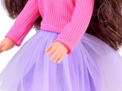Az elegáns baba, amely 36 cm magas, ideális társ kis hölgyek számára. A hosszú barna hullámos haj, amely fésülhető és formázható, erősíti a gyermekek divatérzékét és fejleszti a hajápolási készségeket. Elegáns rózsaszín blúzba és lila szoknyába van öltöztetve, és rózsaszín cipőkkel és sapkával stílusos megjelenést kínál. Mozgatható kezek és lábak teszik lehetővé a babák különböző pozíciókba való helyezését, ami kreatív és képzeletdús játékot támogat.