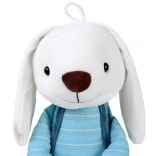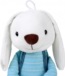 Ez a selymes tapintású plüssjáték minden gyermeket megörvendeztet. A nyuszi kantáros nadrágot és csíkos, hosszú ujjú pólót visel, barátságos és biztonságos benyomást kelt. A minőségi, kellemes anyagnak köszönhetően ideális ölelgetéshez és mindennapos játékhoz.