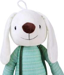 A műanyag szemekkel és a hímzett orral ellátott, biztonságos kivitel garantálja, hogy a gyerekek gondtalanul játszhassanak vele. A nyuszi elég nagy (kb. 60 cm), így legjobb baráttá válhat otthon és utazás közben is.