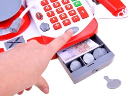 Ez a gyermek pénztárgép mindent kínál, amire egy kis eladónak szüksége lehet: működő számológépet az alap számításokhoz, fény- és hanghatású szkennert, árumérleget és mikrofont a bemondásokhoz. A pénztárfiók az „open” gombbal nyílik és zárható. A gazdag tartozékoknak köszönhetően a gyerekek könnyedén eljátszhatják a valódi vásárlást.