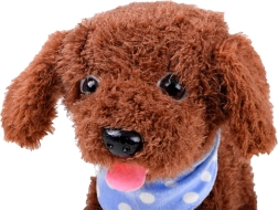 Az interaktív plüss kutyus puha, ölelni való társ, amely bekapcsolás után képes előre sétálni, ugatni, nyüszíteni és csóválni a farkát. A érintésre reagáló funkciónak és a pórázos irányításnak köszönhetően rengeteg örömet és élethű játékélményt nyújt a gyerekeknek.
