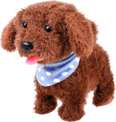 Ez a bájos plüss kutyus pórázon ideális választás azoknak a gyerekeknek, akik saját kisállatra vágynak. Elem behelyezése és a kapcsoló bekapcsolása után reagál a simogatásra és érintésre – vidám ugatással, nyüszítéssel és örömteli farokcsóválással. A pórázon található gombbal könnyedén elindítható a séta és a hangok.