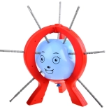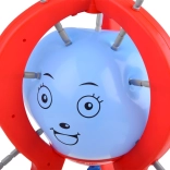 A lufi tartószerkezetének összeállítása és a lufi felfújása után dobj a kockával, majd tekerd meg a pálcikát annyiszor, amennyi pötty a kockán látható. Vigyázz az éles pálcikákkal! Túl sok fordítás és a lufi kipukkan. A Boom Boom lufi játék 2 vagy több, 8 évesnél idősebb játékos számára készült, és nem igényel elemet.