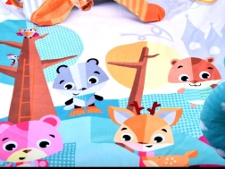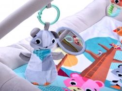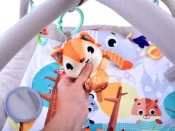 Ez a cuki és puha játszószőnyeg visszafogott színekben, kontrasztos grafikával ideális a legkisebbeknek. A megemelt, puha szélek növelik a biztonságot gurulás közben, míg a levehető tornaív karikákkal megkönnyíti a játékok hozzáadását vagy cseréjét. A biztonságos tükörnek, csörgőknek és susogó elemeknek köszönhetően a baba jól szórakozik, miközben fejleszti érzékeit.