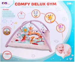 Puha és kényelmes játszószőnyeg tornával, amely biztonságos és ingergazdag helyet kínál játékhoz és pihenéshez. Tartalmaz érzékelést fejlesztő hatású függő játékokat, biztonságos tükröt, puha, megemelt széleket és támasztó párnát a baba kényelméért. Támogatja a finom- és nagymozgások fejlődését, a kéz–szem koordinációt és az érzékszervi észlelést.
