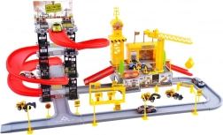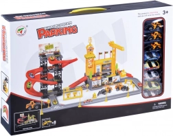 A kiterjedt gyerek készlet parkoló és építkezési játszótér építéséhez rengeteg kreatív szórakozást kínál. Színes műanyag elemek, 4 parkolószint, hosszú lejtők, benzinkút és táblák egészülnek ki egy csatlakoztatott építési zónával daruval és gépekkel. A csomagban 8 jármű és bőséges kiegészítők találhatók a valósághű játékhoz.