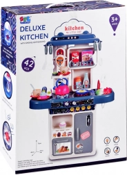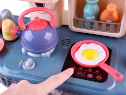 Fedezze fel a komplett gyerekkonyhát, amely egy valódi konyha miniatűr mása. A készlet akár 42 elemet tartalmaz, és kínál egy mosogatót zárt vízkörrel, főzőlapot fény- és hangeffektekkel, gőzeffektet az égőn, nyitható sütőt és hűtőszekrényt, sőt kapszulás kávéfőzőt is. Tökéletes a fantázia, a finommotorika és a kreativitás fejlesztéséhez a szerepjáték során.
