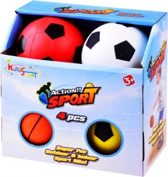 Négy darab könnyű, 10 cm átmérőjű hablabdából álló készlet, amely rengeteg szórakozást nyújt otthon és a szabadban egyaránt. A biztonságos habnak köszönhetően gyerekeknek és felnőtteknek is ideális – játékra, edzésre és stresszoldásra. A csomagban három focilabda-stílusú és egy narancssárga kosárlabda labdát találsz. Könnyű és tartós hab, biztonságos beltéri használat és remek eszköz a finommotorika fejlesztéséhez.
