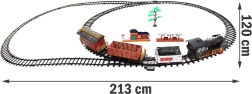 A készlet gondosan, a legapróbb részletekre ügyelve készült. A mozdony klasszikus gőzös stílusú, erőteljes meghajtással, menet közben világító fényszóróval. Ezen felül kürtöl, az elején található szélkürt figyelmeztető hangot ad, és ha feltöltjük a víztartályt, a kéményből füst száll fel, ahogy az egy régi gőzöshöz illik. Menet közben különféle, a vasútra jellemző hangokat ad: sípszó, a sínek kattogása, csengő, stb. Ez a látványos vasútmodell vagonokkal biztosan örömet szerez minden kezdő vasútmodellezőnek.