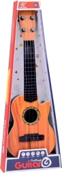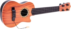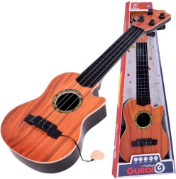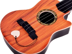 Könnyű gyerek gitár faerezet utánzattal és négy fém húrral – ideális az első zenei lépésekhez. A kompakt méretnek köszönhetően a gyerekeknek kényelmes fogást biztosít, és könnyű rajta játszani. A csomag tartalmaz pengetőt, a nyakon pedig alapvető finomhangolási lehetőség javítja a hangzást. Fejleszti a ritmusérzéket, a motorikát és a kreativitást. Remek választás kis zenészeknek és a zene világával való első ismerkedéshez.