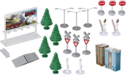 Biztonságos terméket kínálunk, amely megfelel az európai CE szabványoknak, és 4 éves kortól ajánlott. Az egyes elemek méretei: a mozdony 13 x 3 x 4 cm, a vagonok 11,5 x 3 x 3,5 cm, a fák magassága 7,5 cm, az épületek átlagos mérete 5 x 11 x 5 cm – mindez változatos építési és játéklehetőségeket biztosít.