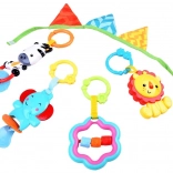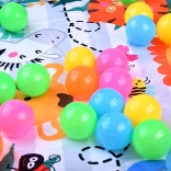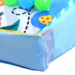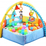A csomag 30 műanyag labdát és 4 függő játékot tartalmaz, amelyek elősegítik a motoros készségek fejlődését.